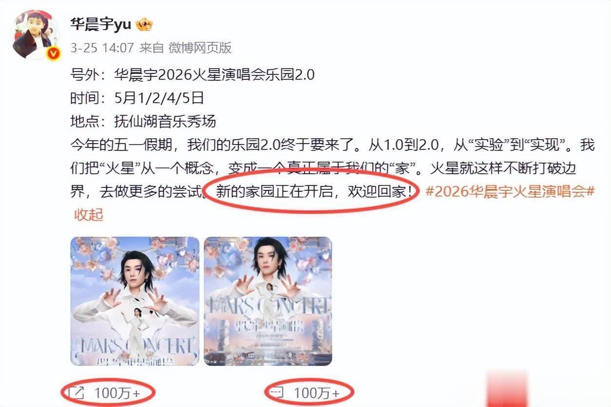紧接着3月25号他就官宣了要在五一节假日期间开启自己火星演唱会乐园2.0计划。